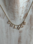 Ce collier "Chance" en acier inoxydable est un bijou raffiné et tendance. Chaque lettre est délicatement suspendue à la chaîne et pavée de strass qui captent la lumière. Fabriqué en acier inoxydable, il est à la fois durable et résistant à l'eau, garantissant un éclat durable. Un accessoire parfait pour compléter votre tenue avec une touche d'éclat et attirer la chance chaque jour.