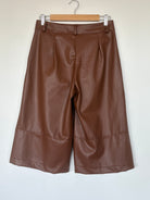 Adoptez le style urbain chic avec ce superbe bermuda en simili cuir dans une magnifique teinte camel, confectionné avec soin en Italie.