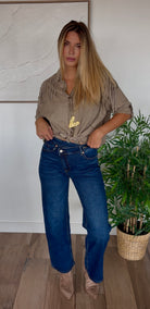 Osez l'originalité avec ce jean asymétrique BLEU au design unique et contemporain, parfait pour un look décontracté chic.
