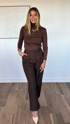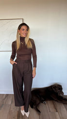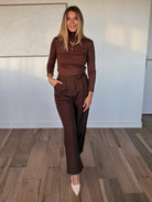 Découvrez notre Pantalon Tailleur Marron , la pièce tendance et raffinée qui apporte une touche de modernité à votre garde-robe professionnelle.