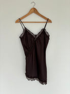 Découvrez notre top en satin marron avec détails en dentelle, disponible du 36 au 40. Pièce élégante et raffinée pour sublimer votre silhouette.