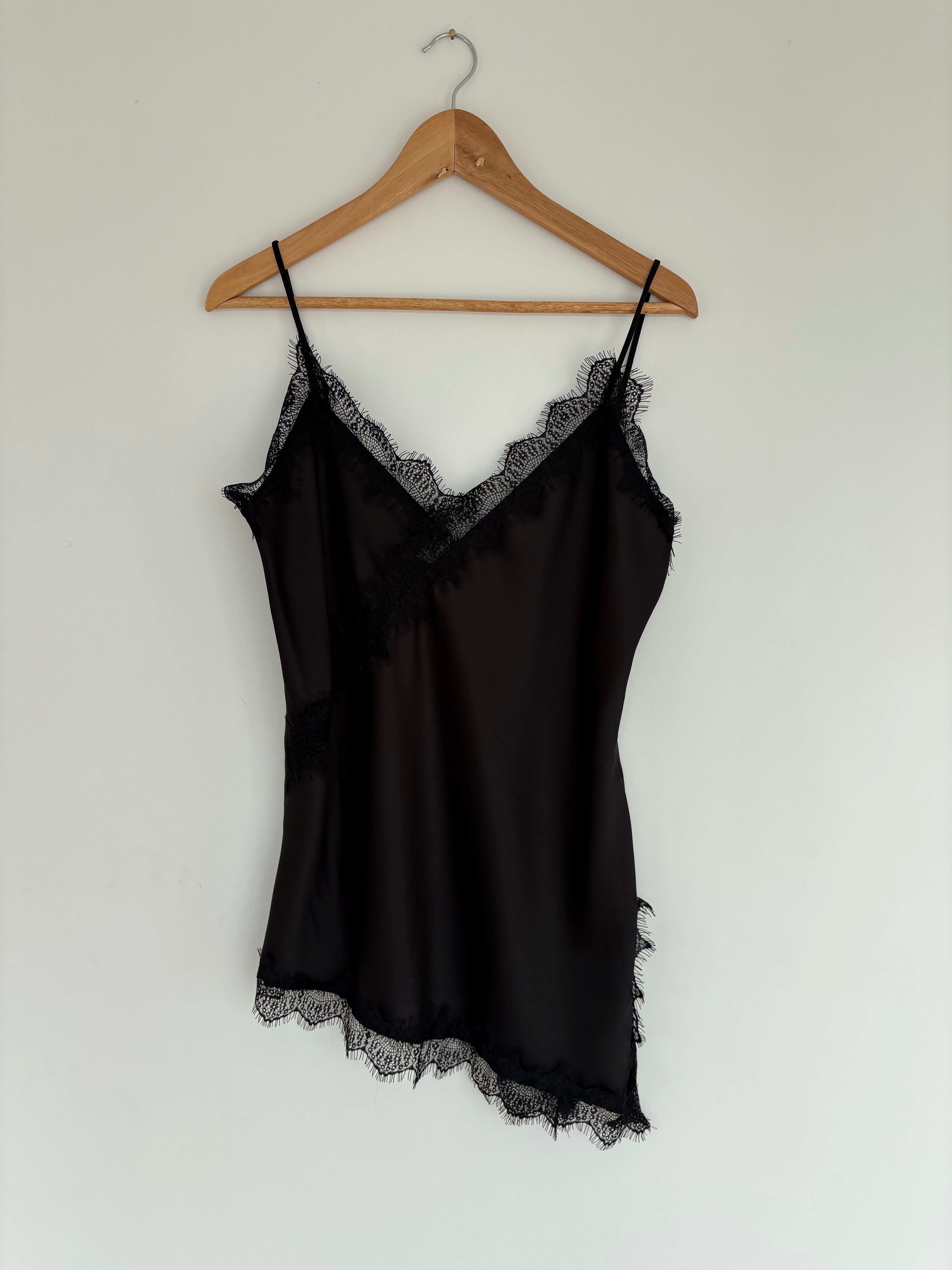 Découvrez notre top en satin noir avec détails en dentelle, disponible du 36 au 40. Pièce élégante et raffinée pour sublimer votre silhouette.