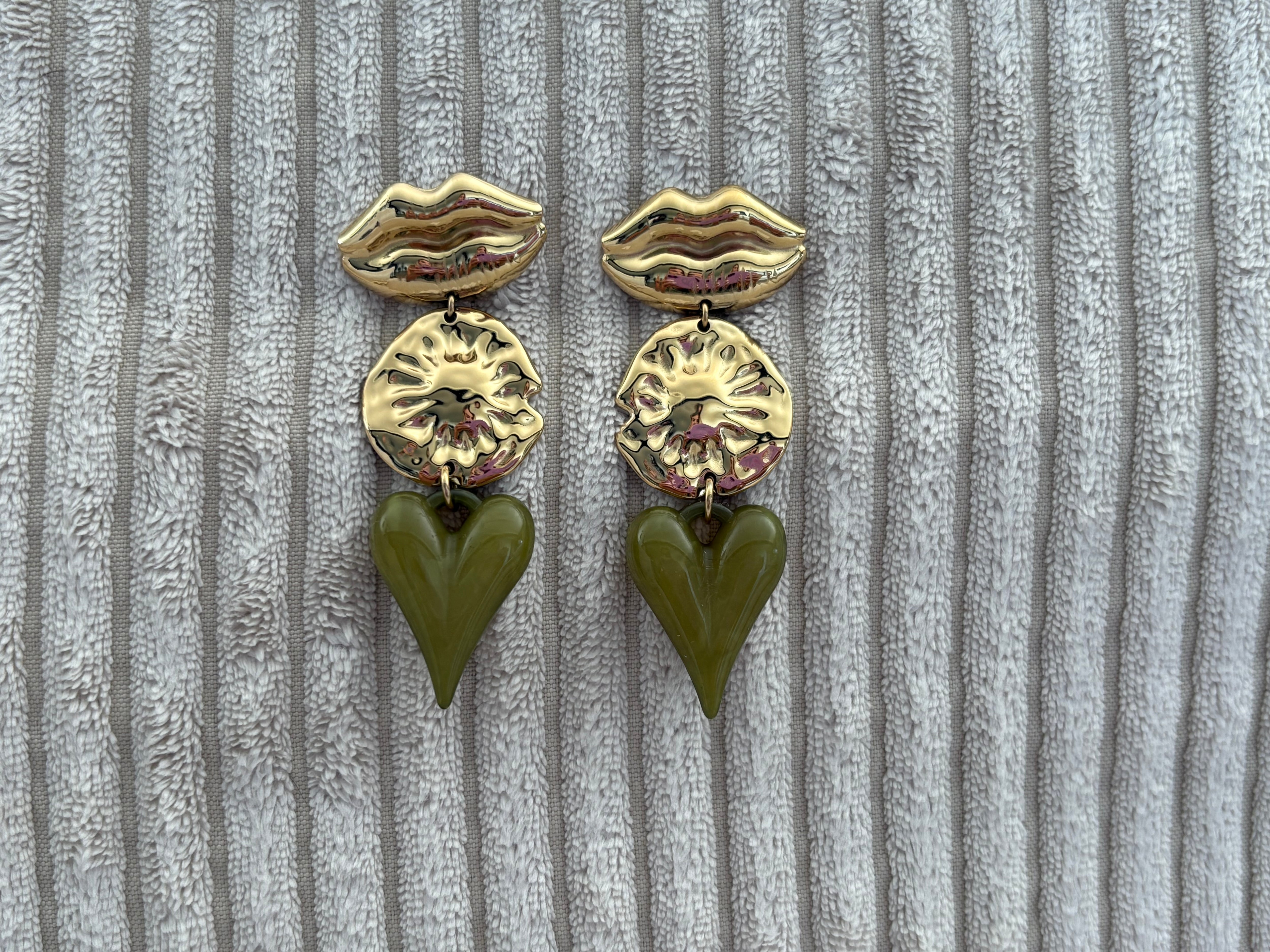 - Cœur en résine kaki : Pendentif final dans une belle teinte kaki olive, apportant une note naturelle et tendance