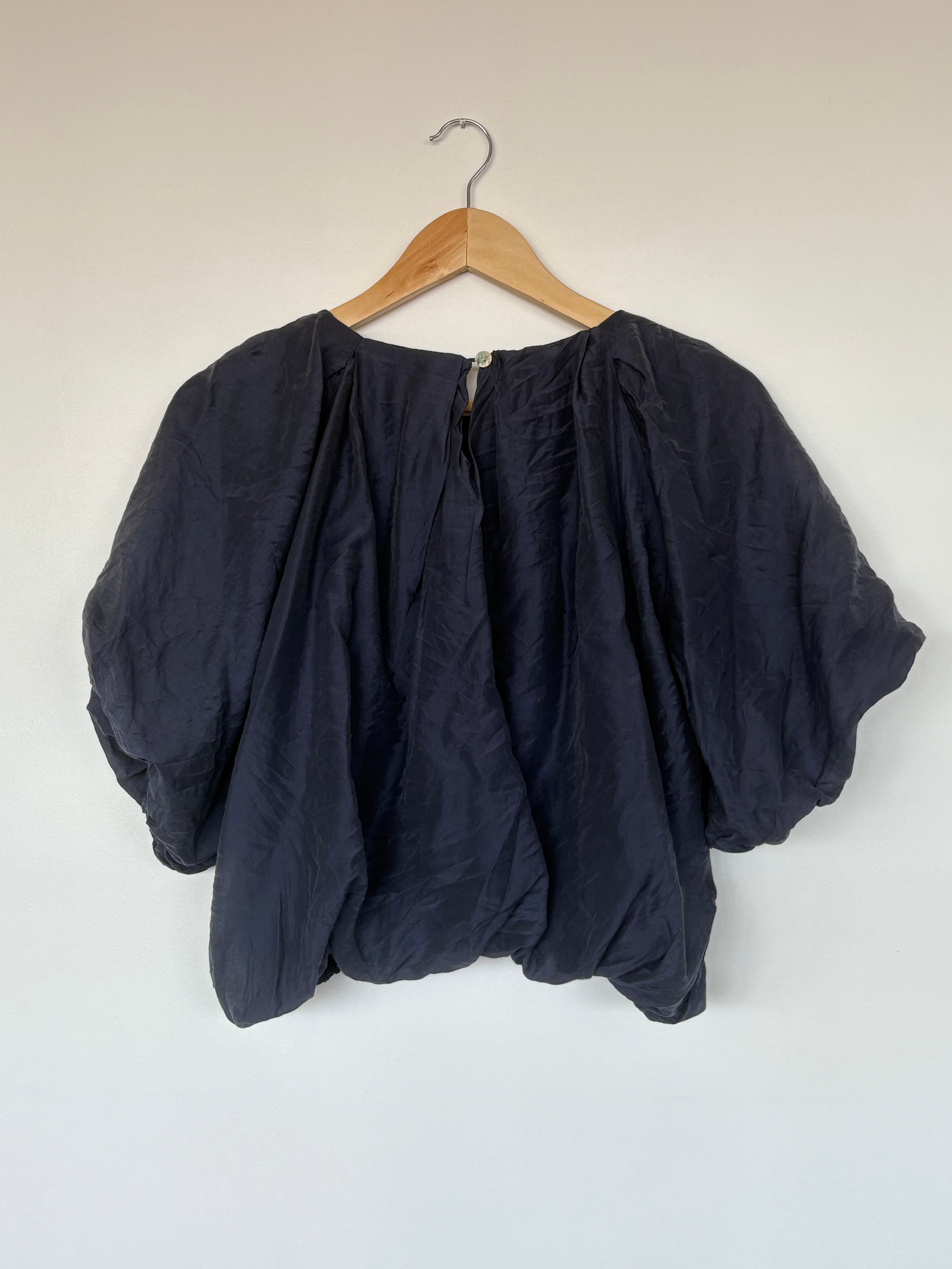 Succombez au charme de cette superbe blouse Vaiana dans un bleu marine profond et sophistiqué, confectionnée avec excellence en Italie.