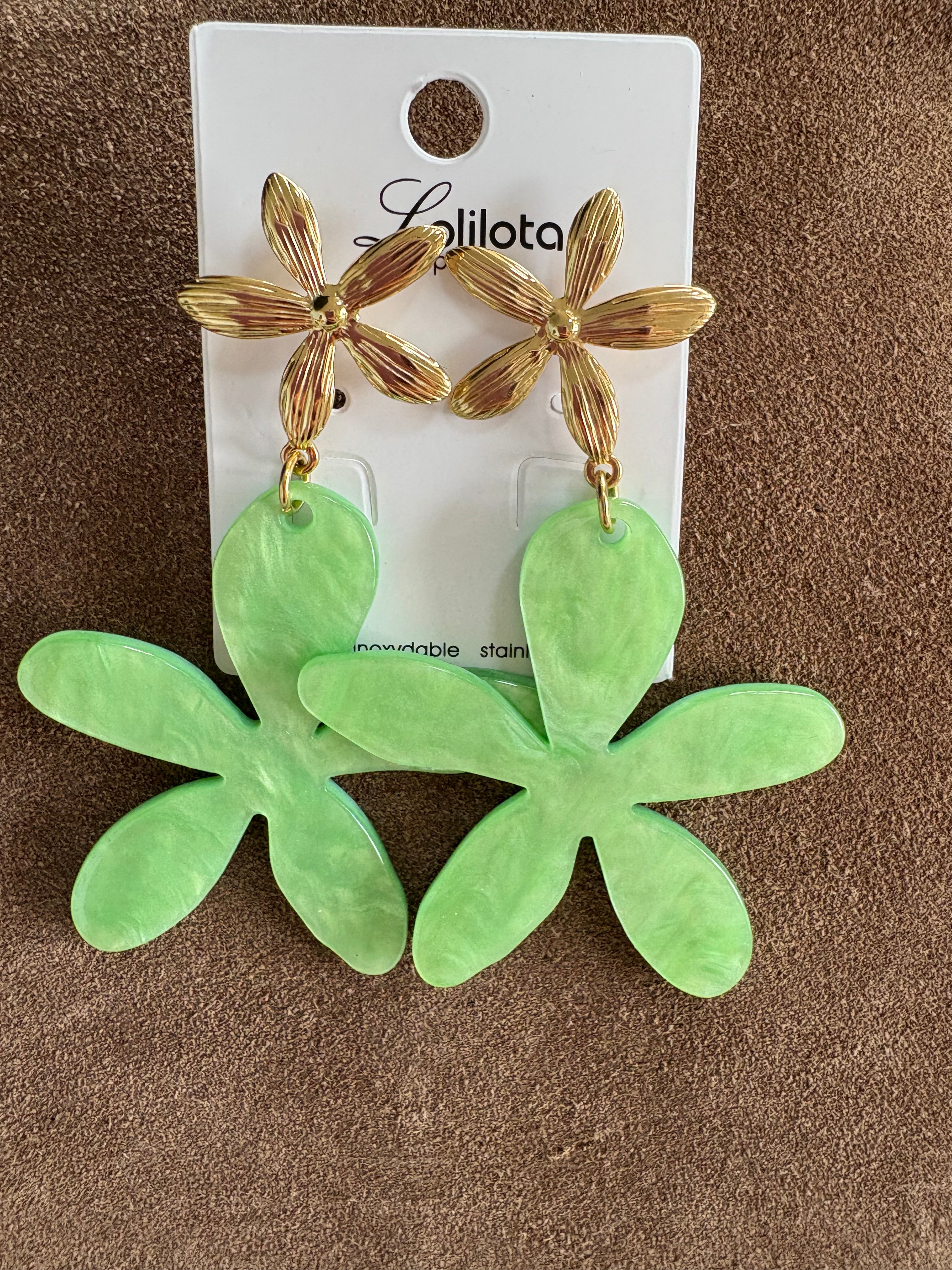 BOUCLES D'OREILLES FLOWERS VERTES