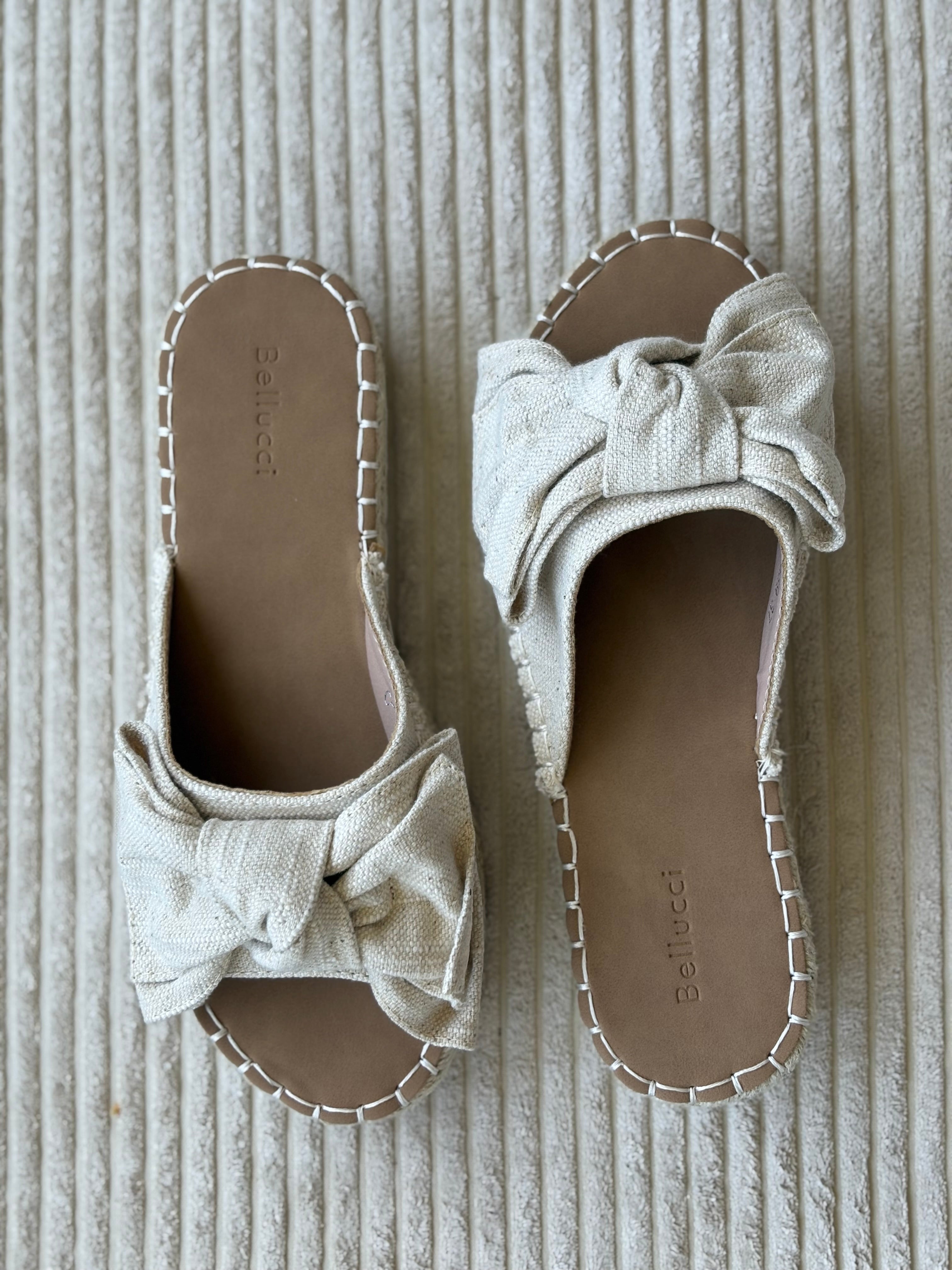 - Design Élégant : Le nœud en tissu ajoute une touche féminine et tendance, tandis que la semelle en jute apporte une note naturelle et chic.