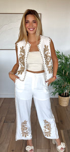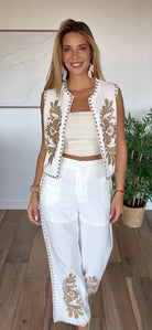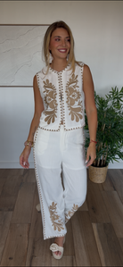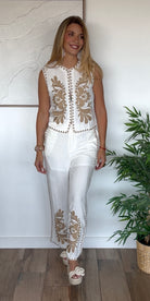 PANTALON LIN MARIKA BLANC BRODÉ