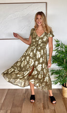 Craquez pour la robe Romane, une pièce bohème chic parfaite pour l'été. Cette robe longue et fluide en viscose et lurex kaki, également disponible en beige, est doublée pour un confort optimal. Son design asymétrique, plus court devant et plus long derrière, allonge la silhouette avec élégance. La taille ajustable par un lien en lurex permet de souligner votre silhouette, tandis que les petits boutons décoratifs sur le devant ajoute une touche raffinée. Le dos nu délicat, agrémenté d'un lacet, apporte une touche de sensualité. Disponible en trois tailles : S, M et L.