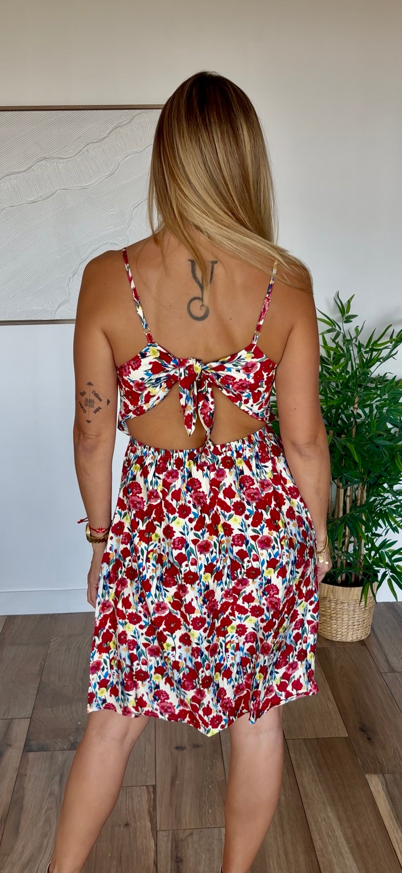 Découvrez notre élégante robe courte dos nu, un incontournable pour les journées ensoleillées. Confectionnée à 80% en viscose, elle offre une légèreté et un confort exceptionnels. Dotée de bretelles réglables, cette robe s'adapte parfaitement à votre silhouette et se ferme avec un nœud dans le dos, ajoutant une touche de sophistication à votre tenue. Disponible en deux tailles (S/M et M/L) et en deux coloris vibrants, elle convient à toutes les morphologies. Idéale pour un brunch, une sortie entre amis ou une soirée d'été, elle se marie à merveille avec des sandales ou des talons.
