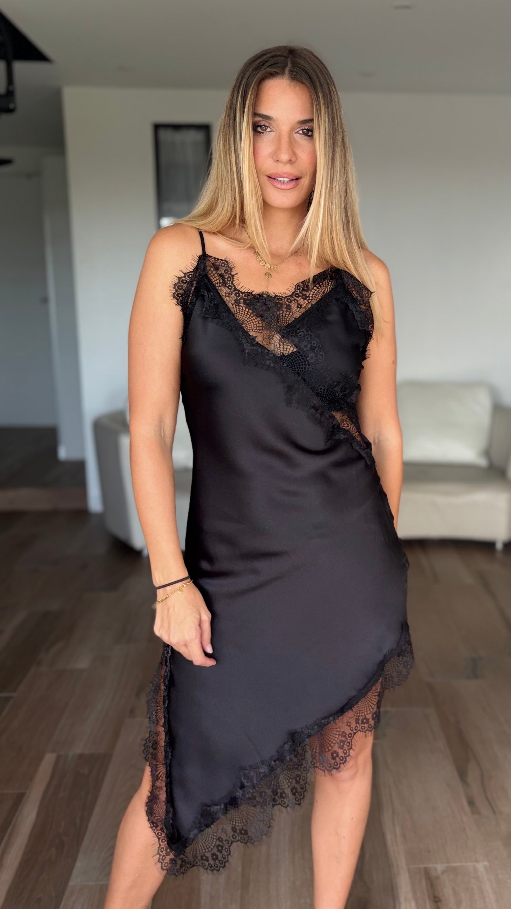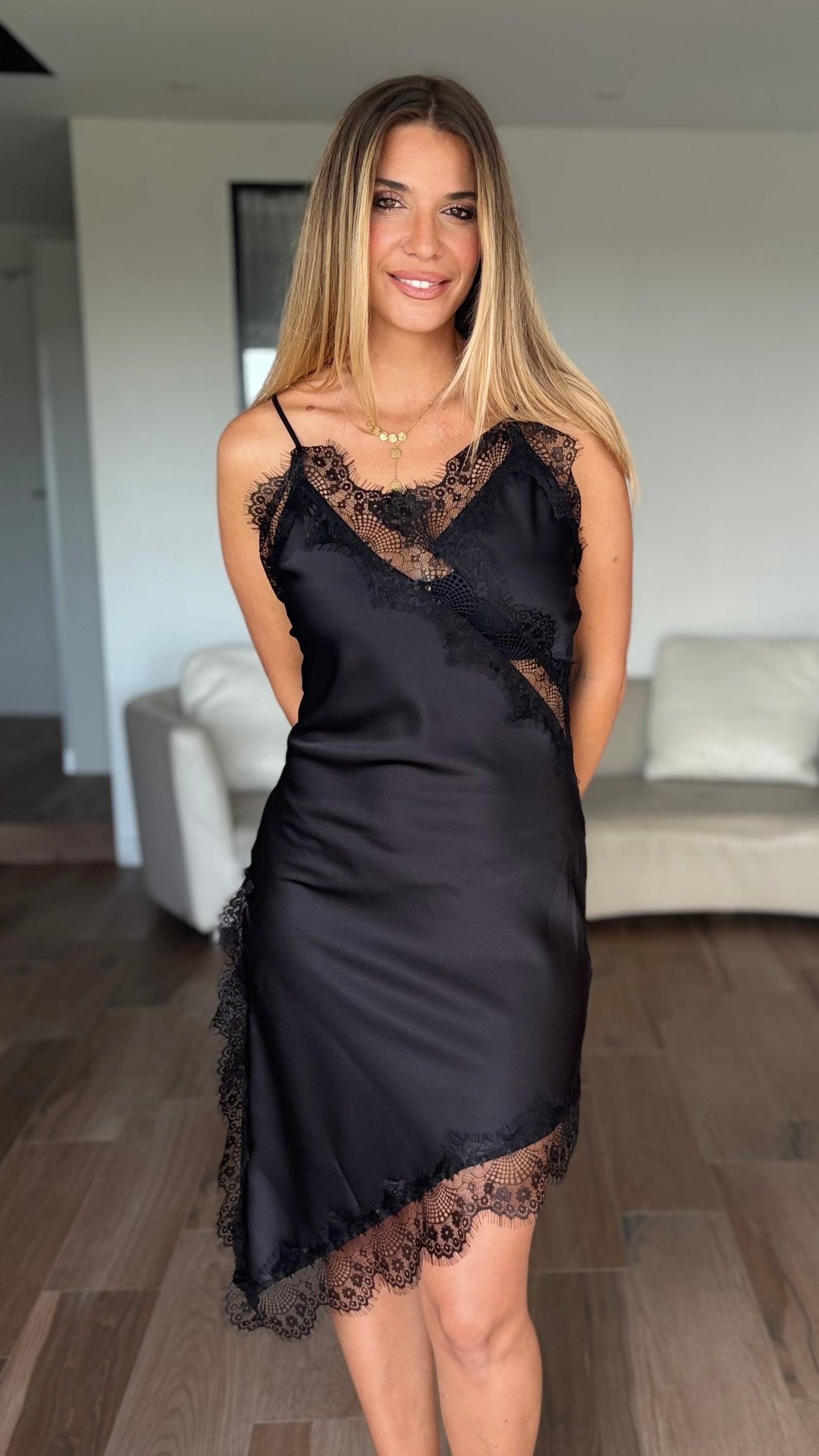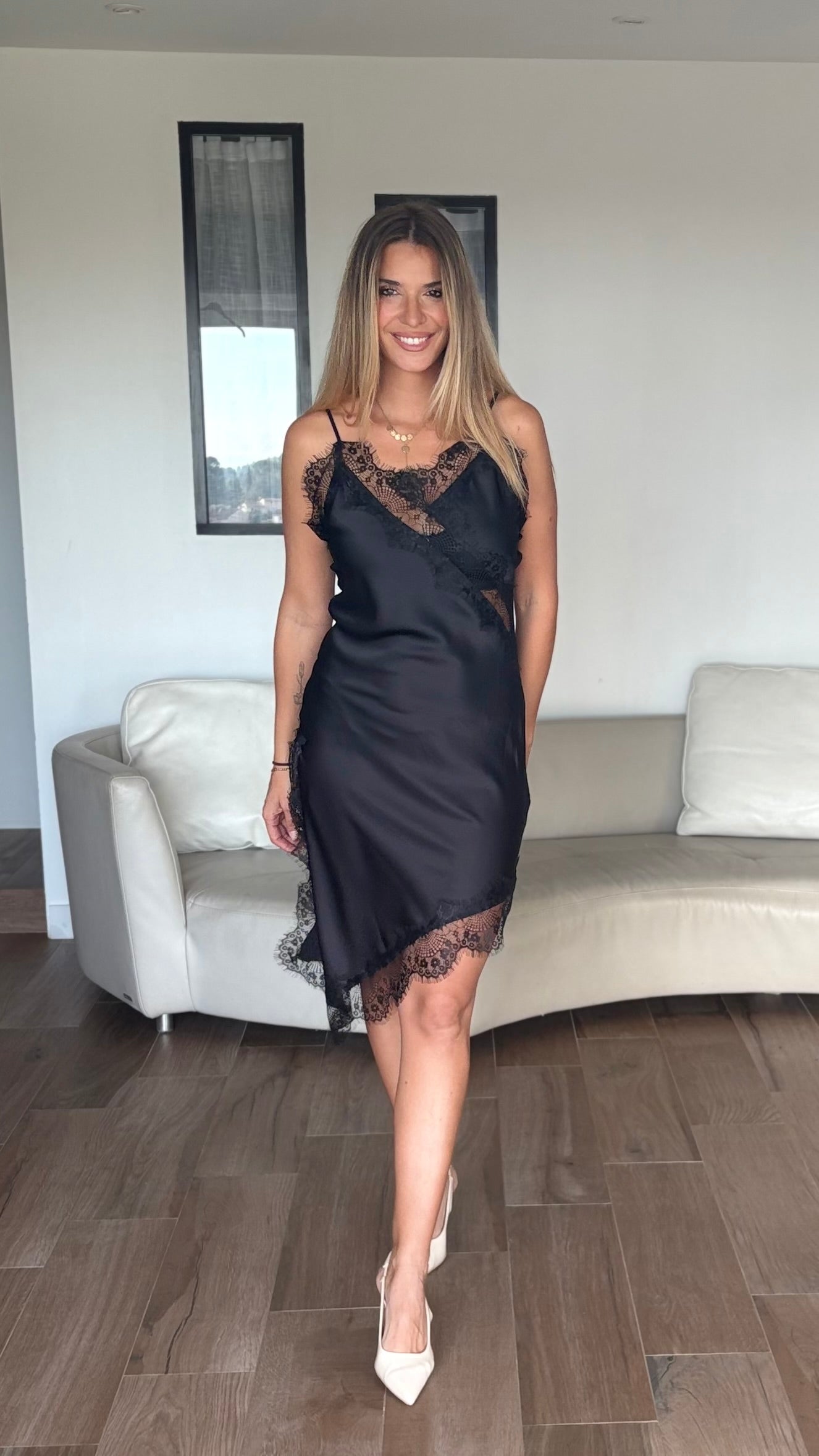 Robe Satinée Dentelle Noire - L'élégance raffinée à l'italienne