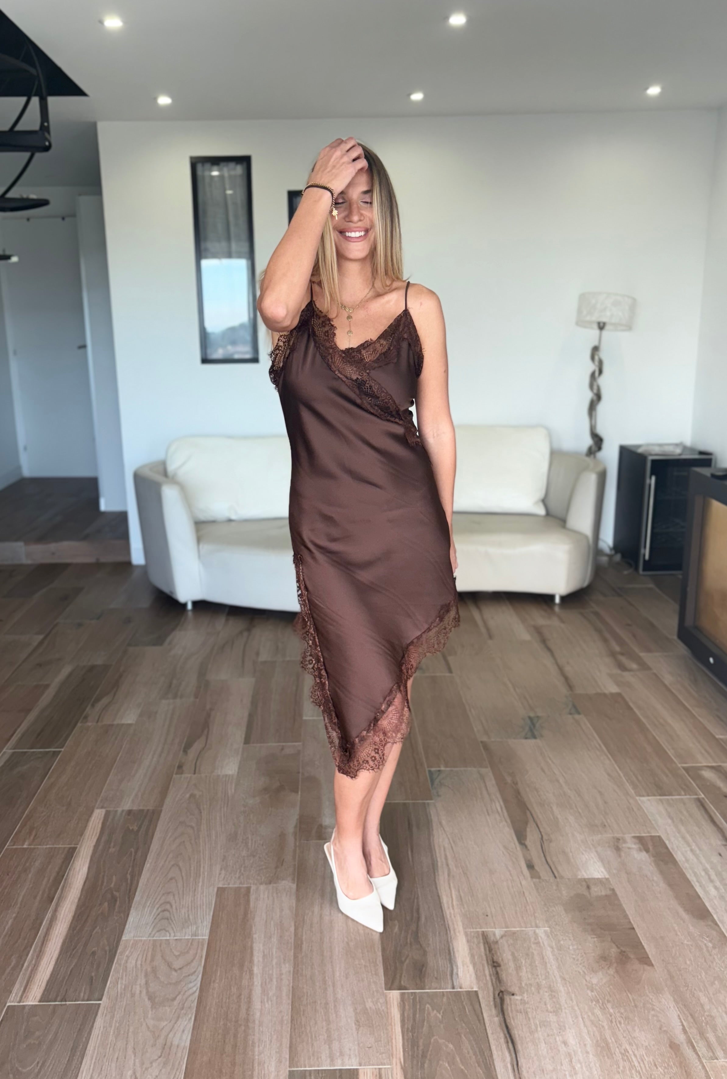 Que ce soit pour un dîner romantique, une soirée entre amies, un mariage ou une occasion spéciale, cette robe satinée vous garantit une allure élégante et raffinée. Les détails en dentelle apportent une touche de délicatesse tandis que le satiné sublime votre silhouette.