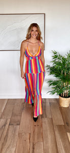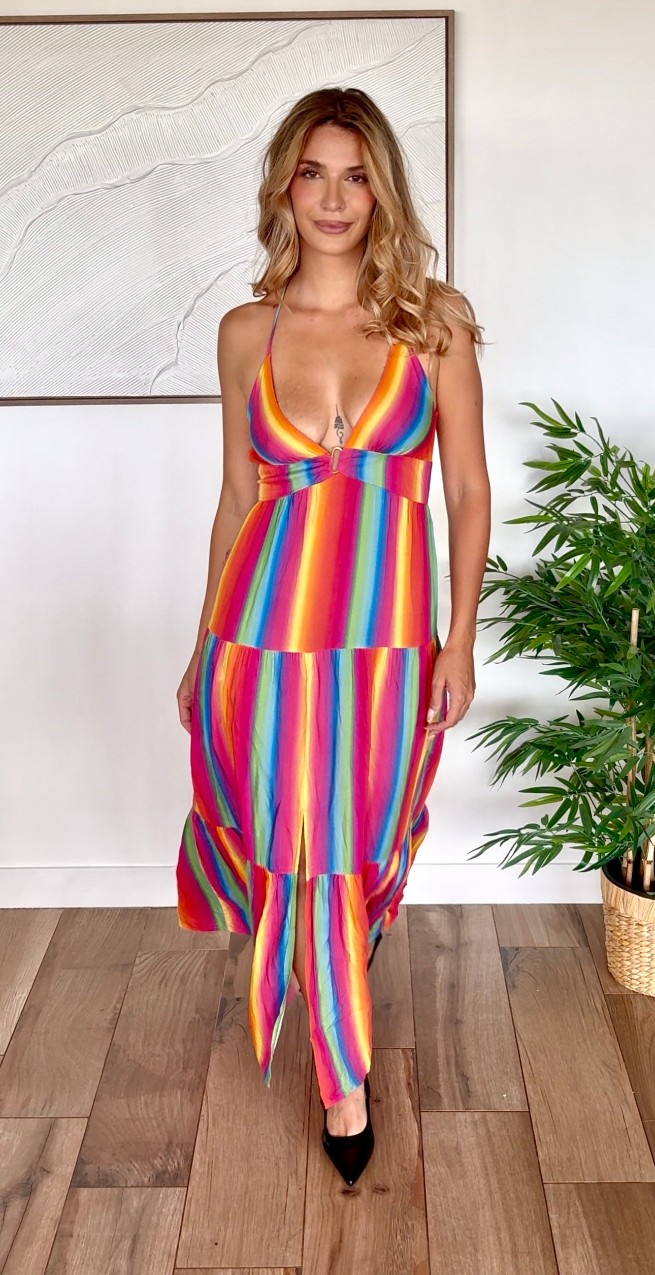 Robe Longue Dos Nu Croisé THAIS ARC EN CIEL VIBRANT