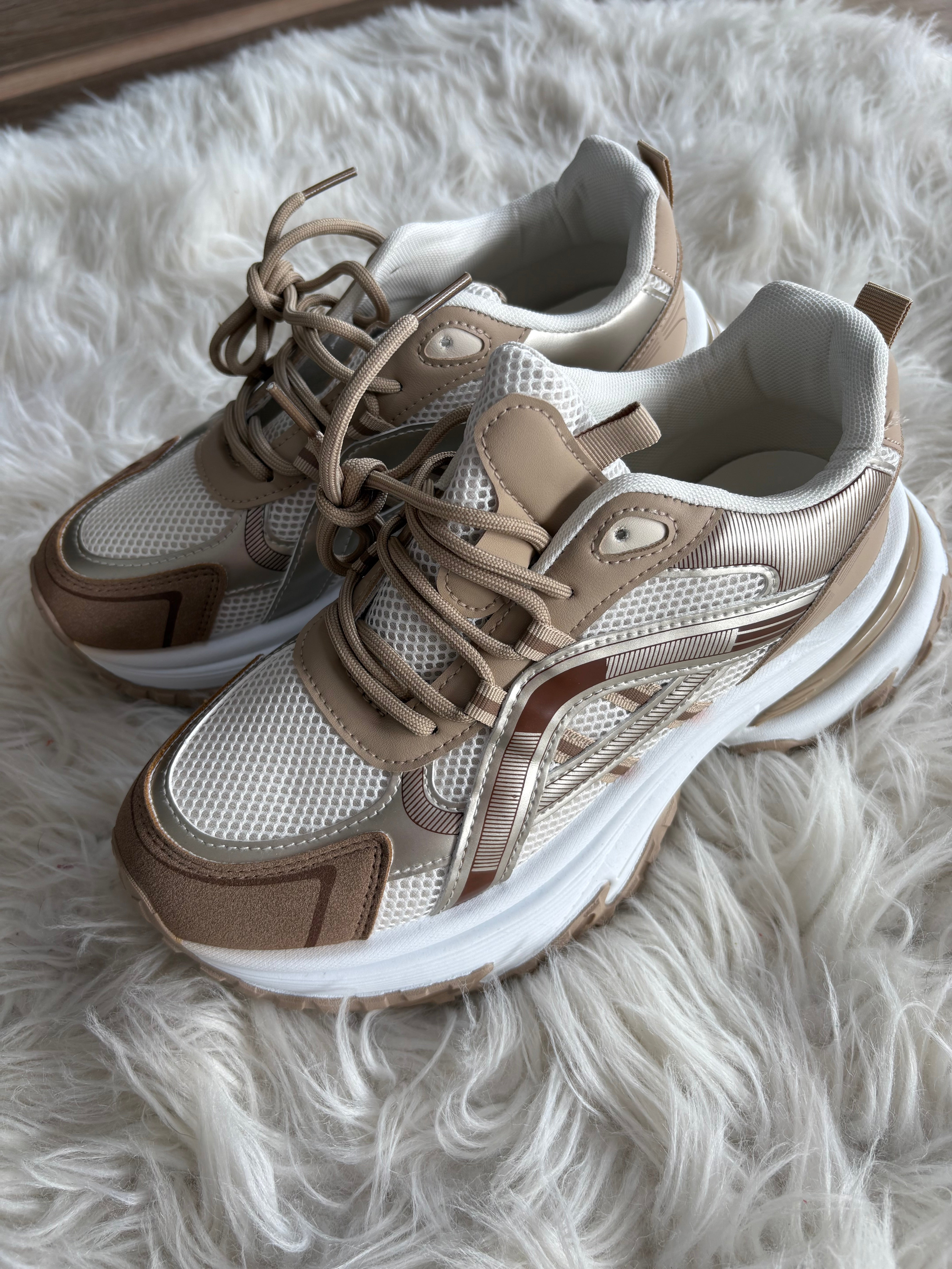 Optez pour l'élégance décontractée avec ces baskets beiges dorées.leur design épuré et minimaliste s'adapte à toutes vos tenues. Confectionnées avec des materiaux de qualité, elles offrent un confort exceptionnel tout en restant strylées. La couleur beige dorée apporte une touche sophistiquée, tandis que les lignes sobres et modernes s'accordent parfaitement pour un look casual chic. Parfaites pour celles qui recherchent le confort et le style en toute simplicité.