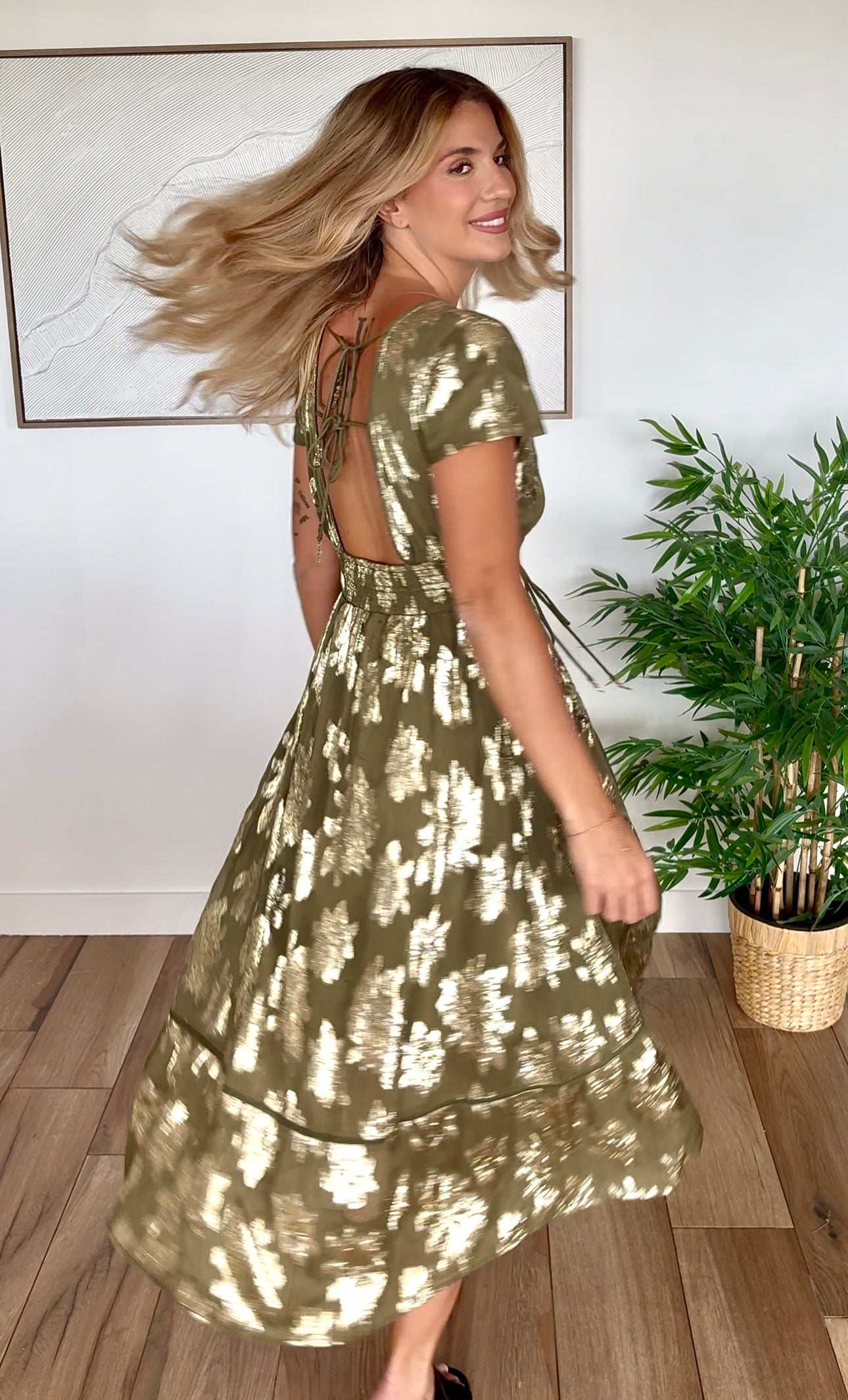 Craquez pour la robe Romane, une pièce bohème chic parfaite pour l'été. Cette robe longue et fluide en viscose et lurex kaki, également disponible en beige, est doublée pour un confort optimal. Son design asymétrique, plus court devant et plus long derrière, allonge la silhouette avec élégance. La taille ajustable par un lien en lurex permet de souligner votre silhouette, tandis que les petits boutons décoratifs sur le devant ajoute une touche raffinée. Le dos nu délicat, agrémenté d'un lacet, apporte une touche de sensualité. Disponible en trois tailles : S, M et L.