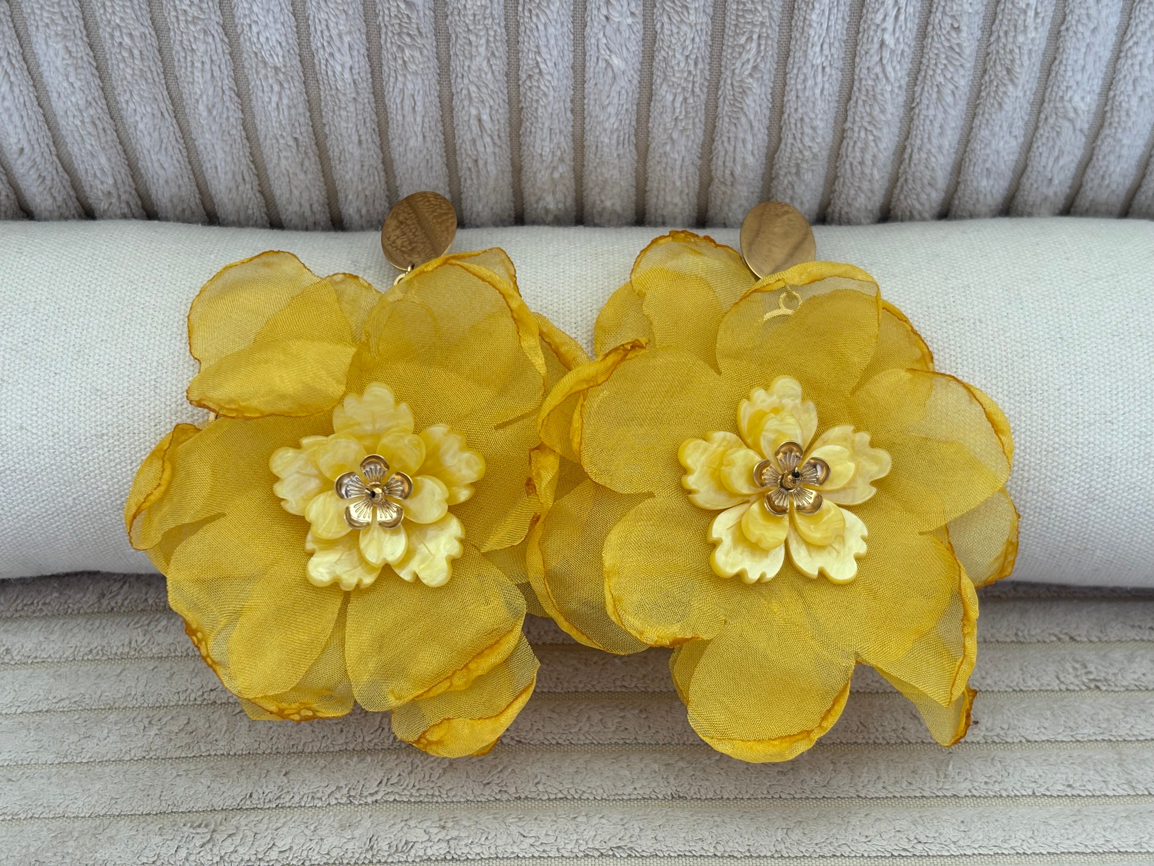 BOUCLES D'OREILLES FLEUR TISSUS JAUNES