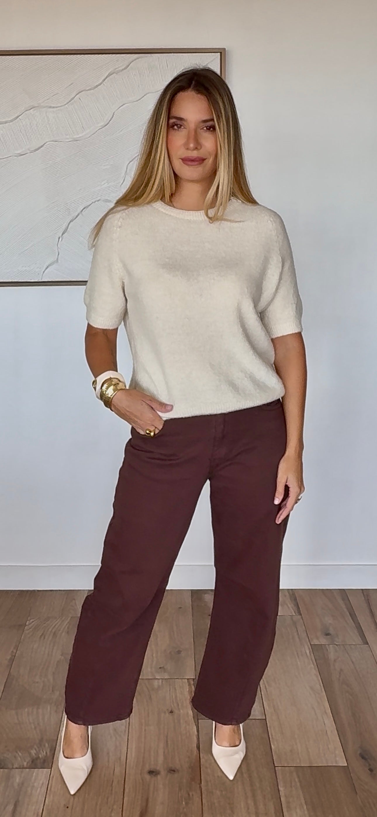 Pull Manche Courte Alpaga Écru - Collection Premium