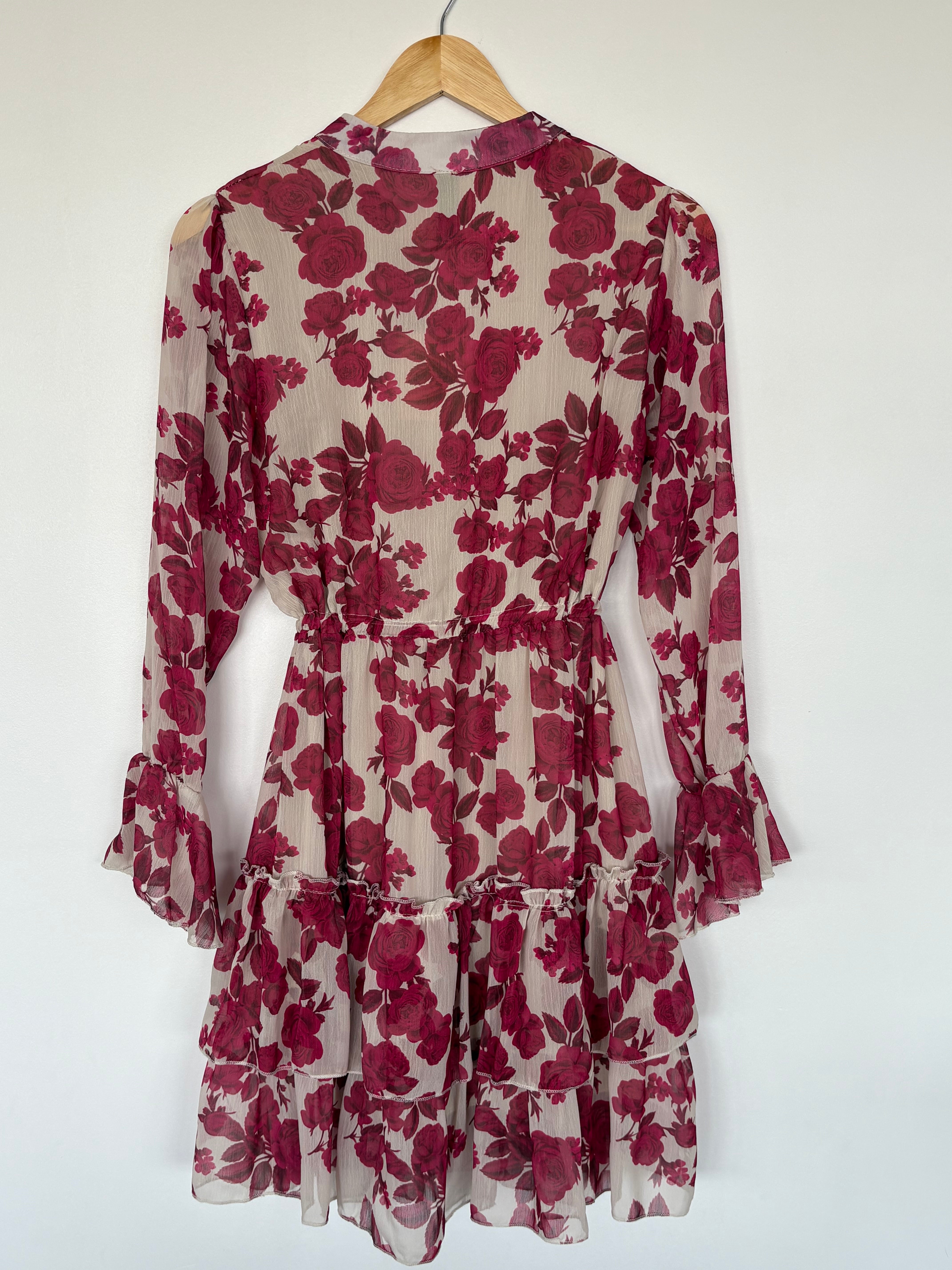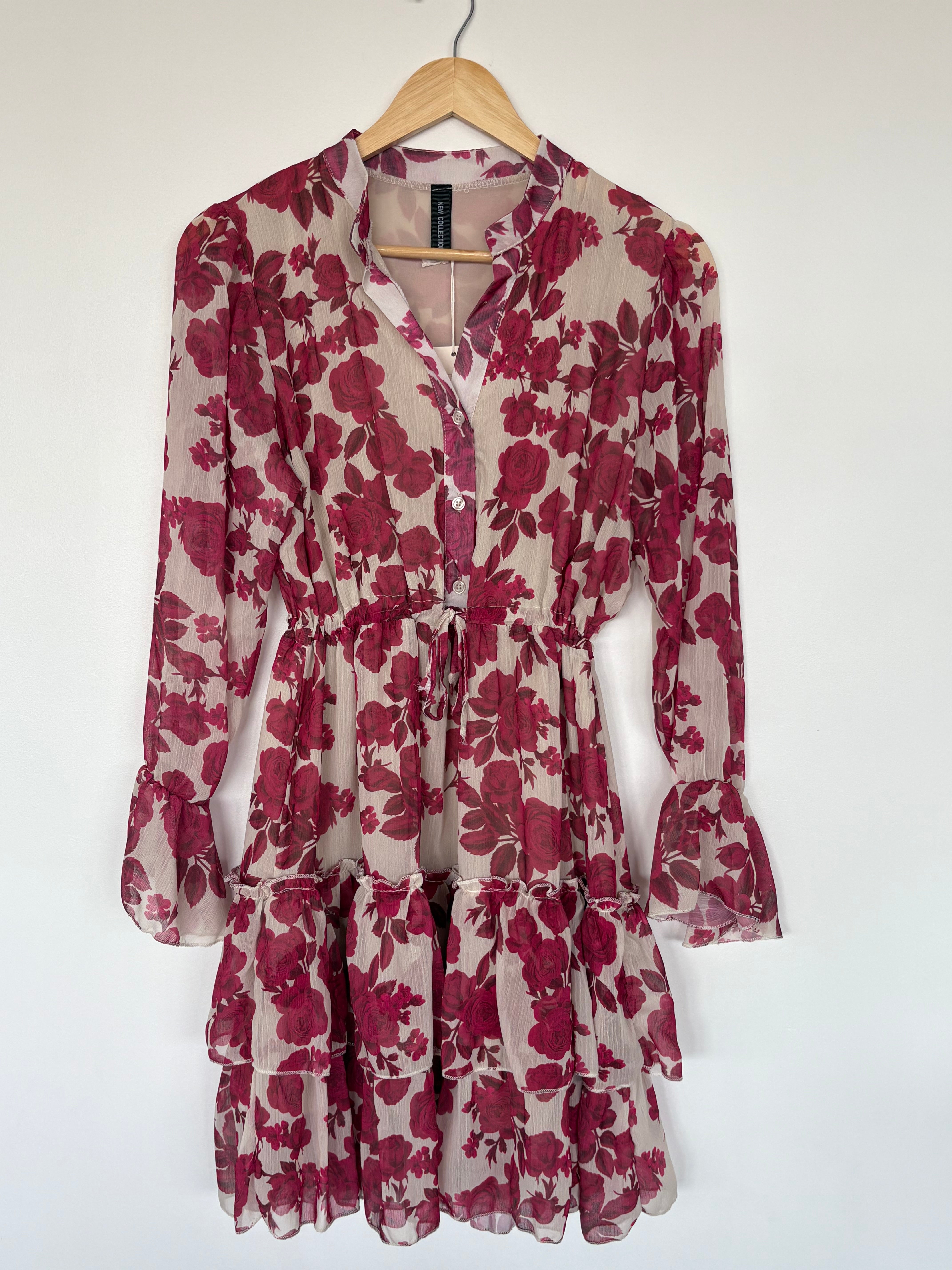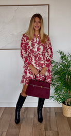 Découvrez la robe Suzanne dans sa version rose, une création raffinée confectionnée en Italie qui incarne parfaitement la féminité et le romantisme. Cette magnifique robe à imprimé floral bordeaux vous séduira par sa coupe flatteuse et ses détails sophistiqués.